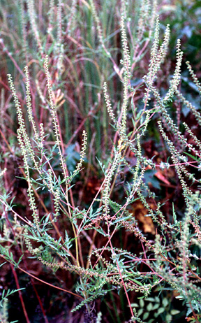 Interesting info Common ragweed's nasty pollen causes much misery to hay-fever sufferers. The tiny flowers grow along long spikes. The slender leaves are deeply cut and lacy.