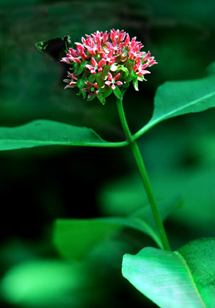 Interesting info An attractive pinkish-purple flower, much deeper in shade than swamp milkweed (which blooms in July) or the even paler common milkweed. The familiar milkweed pod forms on a curlicue stem, much like a pig's tail.