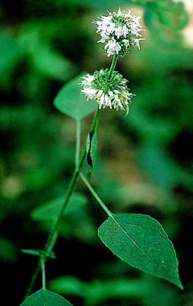 Interesting info This square-stemmed mint has purple-spotted white flowers. The stem and the base of the flowers are very fuzzy or hairy (hirsute).