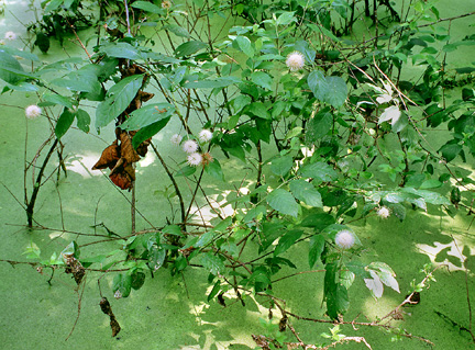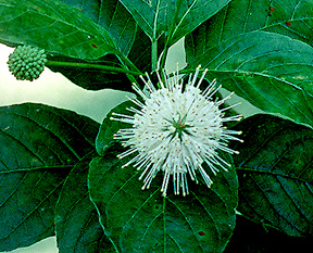 Interesting info Buttonbush has unusual globular flowers. This sprawling bush is a favorite nesting place for some