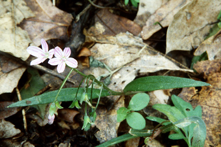 Interesting info Spring beauty is one of the first wildflowers of the spring. It blooms in April at Twin Swamps but can be found weeks earlier in warmer soil elsewhere in southern Indiana. The flowers are generally white tinged with pink, but