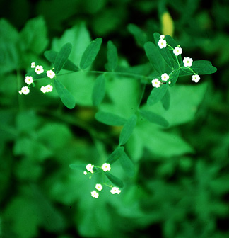 Interesting info Seen rarely in moist woods; more common along roadsides. Flowers are very small. In the sun, they cover the plant