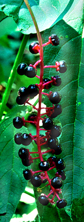 ![]() Pokeweed berries in late summer. Birds love them, but they may be toxic to people |