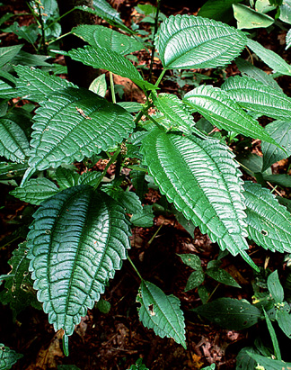 Interesting info Attractive, deep green leaf is conspicuous in late summer. Small tannish flower is found clustered along the stem. The stem of a young clearweed plant appears to be translucent. In the nettle family, but lacks stinging barbs. |